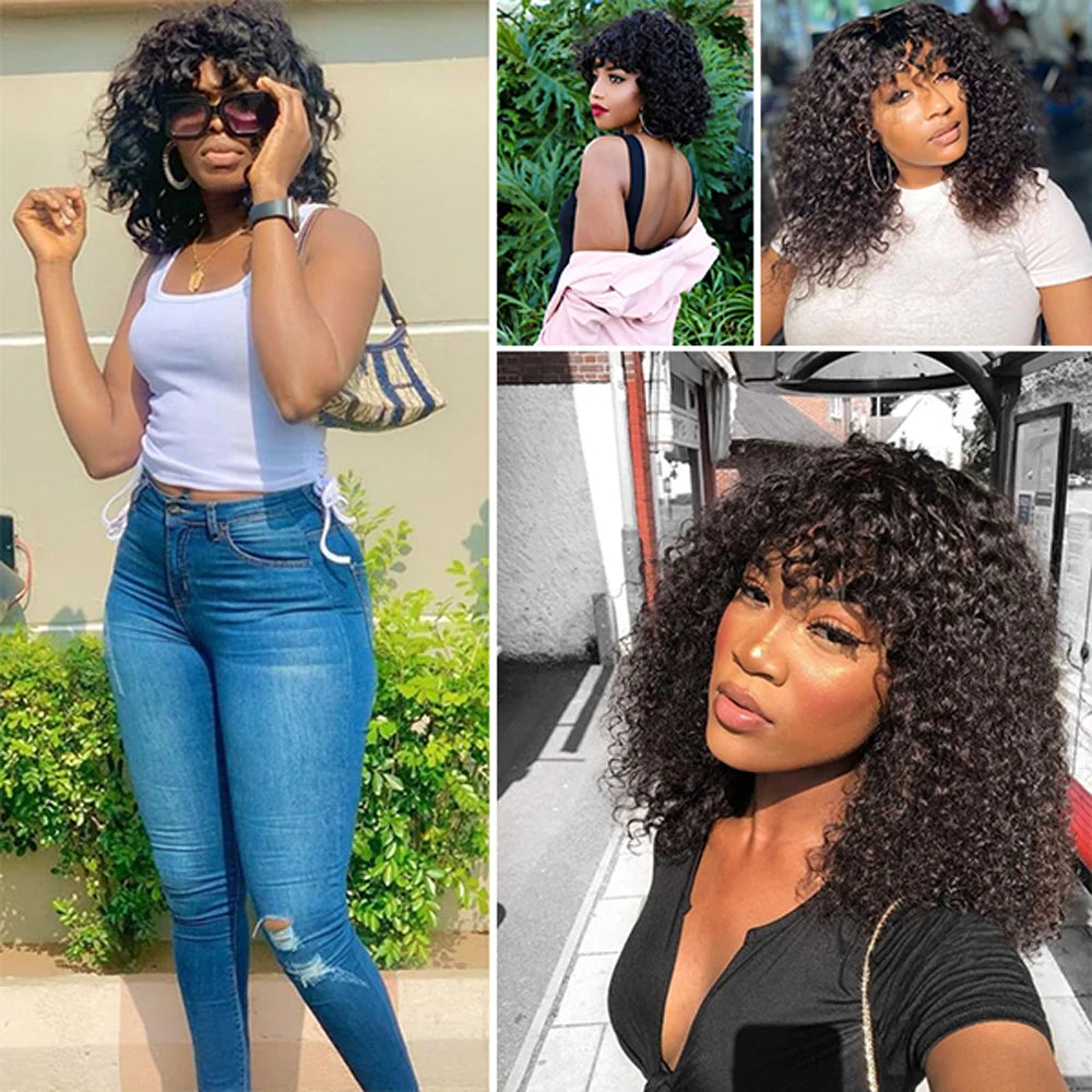 Peruca Curta Cacheada com Franja – Fibra Orgânica