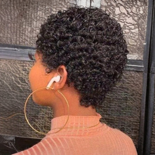 A Wig Natural Kamille é sinônimo de autenticidade e sofisticação. Com um corte curto estilo kinky, seus fios encaracolados, quase crespos, proporcionam um volume natural e marcante. Feita com 100% cabelo humano brasileiro, essa peruca oferece toque macio, movimento realista e total liberdade para estilizar como desejar.
